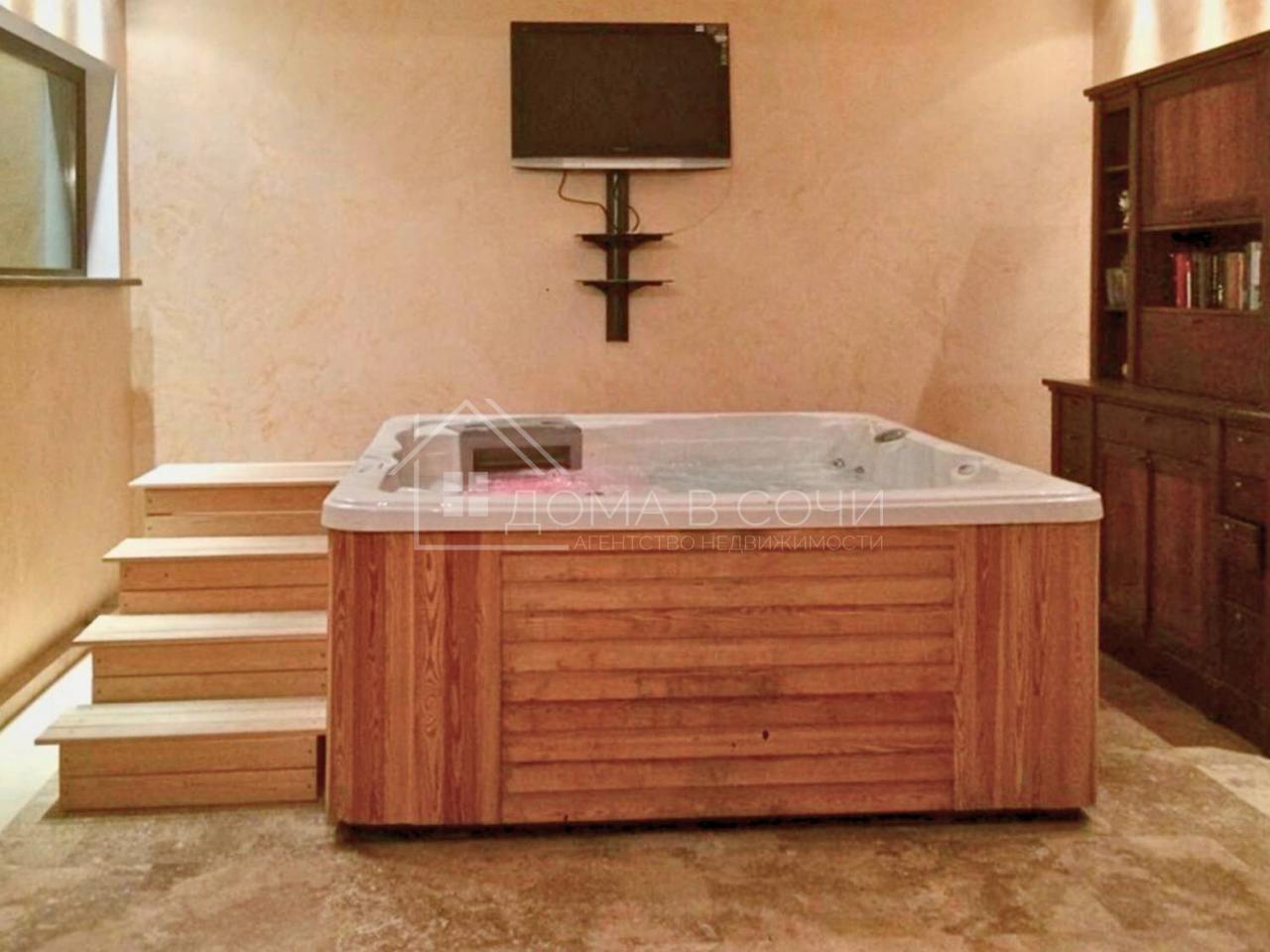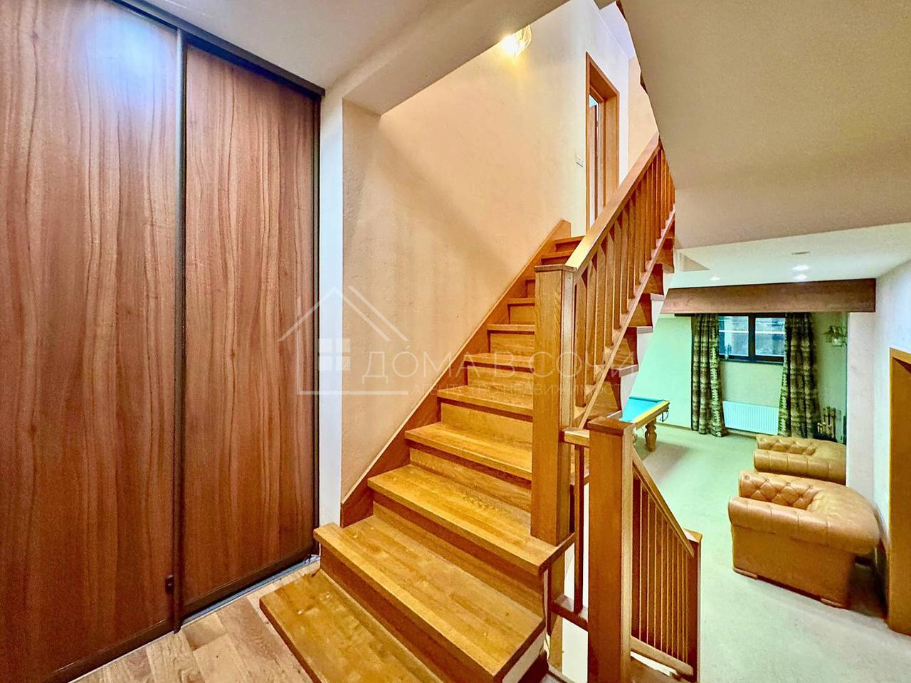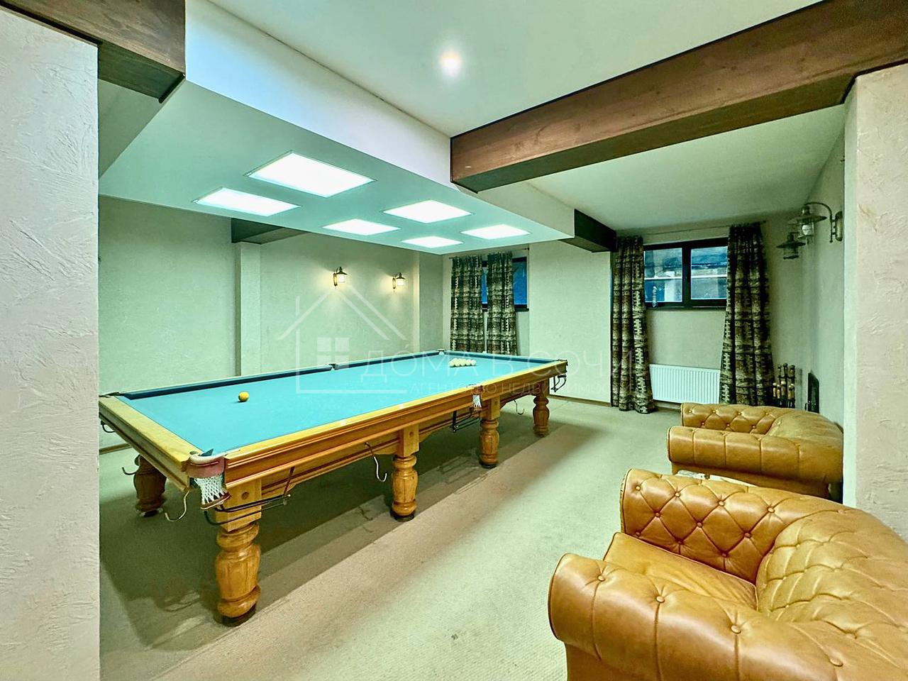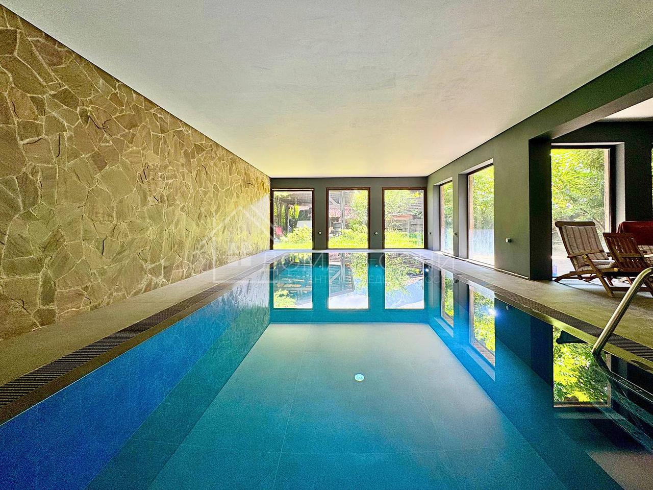 Крытый бассейн с подогревом. Русская баня на дровах для отдыха и релакса. Отдельная квартира для персонала (гостей). Бильярдная для любителей активного досуга. Гараж + крытая парковка для нескольких авто.